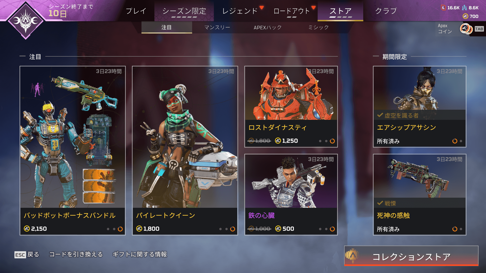 【APEXストア情報】色違いスキン枠にレイス「エアシップアサシン」と、フラットライン「死神の感触」が登場