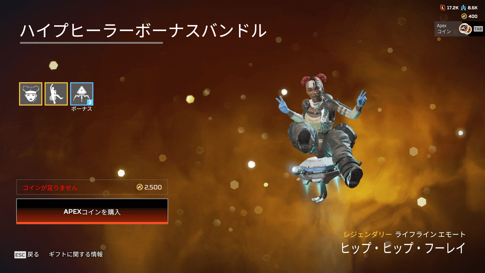 - ライフラインのエモート「ヒップ・ヒップ・フーレイ」