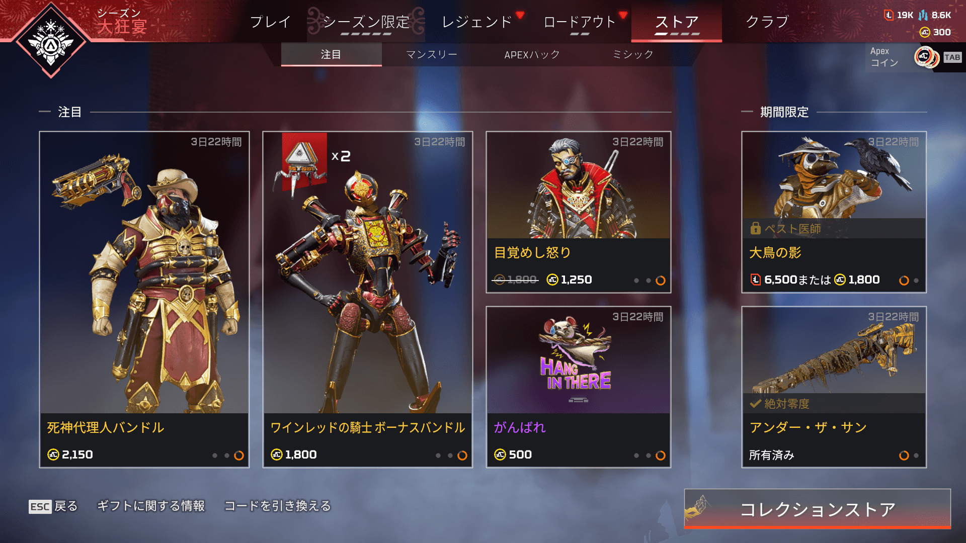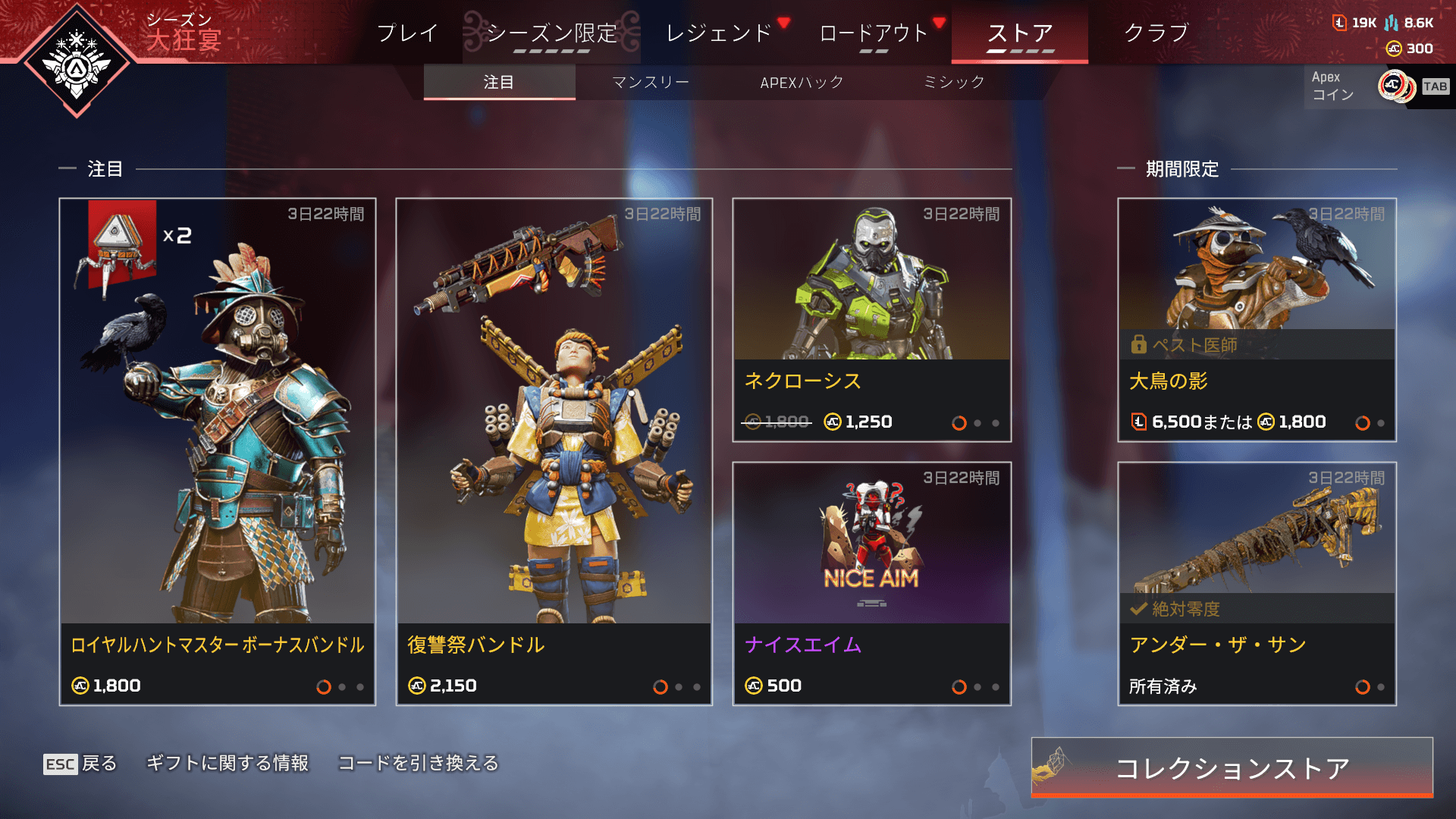 【APEXストア情報】「ブラッドハウンド」と「トリプルテイク」の色違いレジェンダリースキンが登場