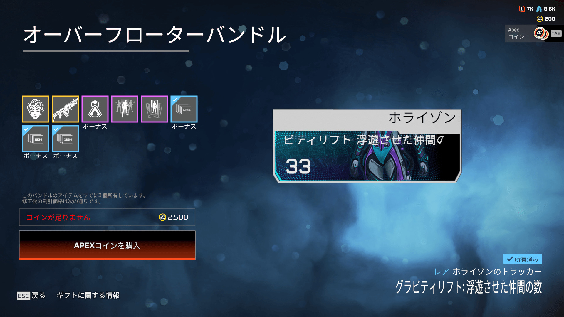 - ホライゾンのトラッカー「グラビティリフト: 浮遊させた仲間の数」