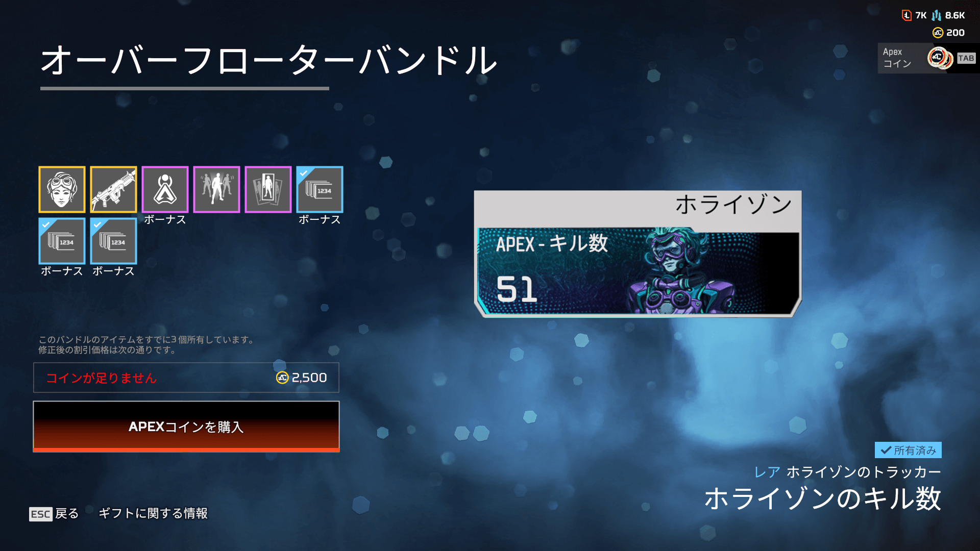 - ホライゾンのトラッカー「ホライゾンのキル数」
