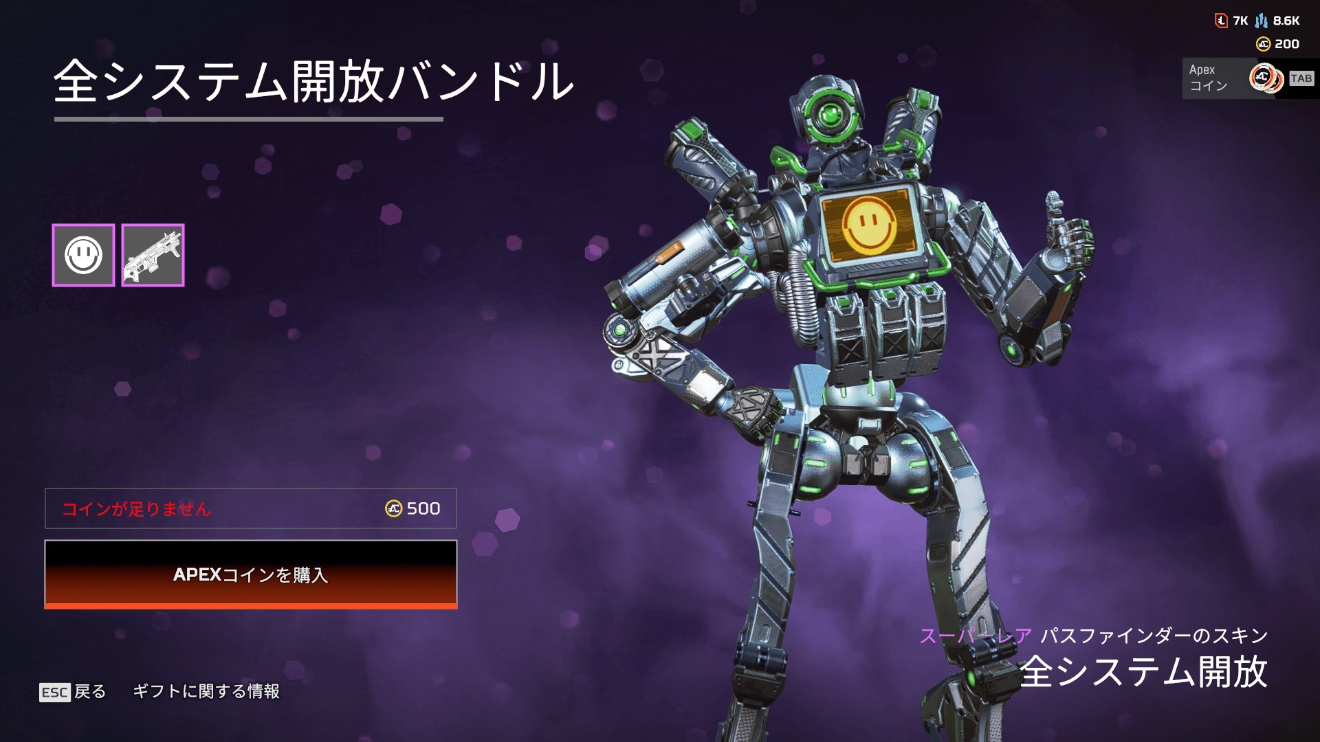 - パスファインダーのスキン「全システム開放」