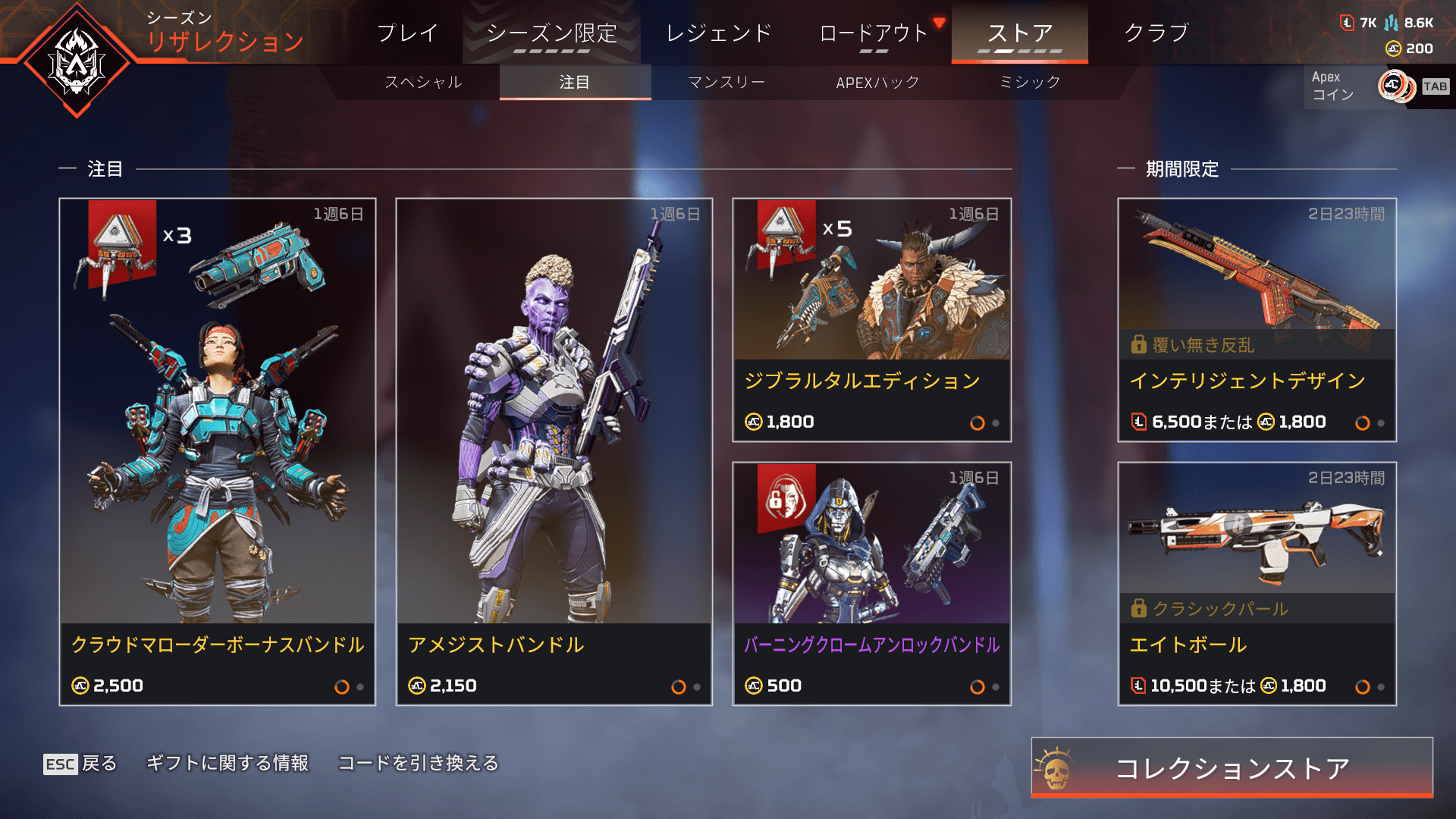 【APEXストア情報】侵略者イベントで登場した「ヴァルキリー」のスキンが再販!色違い枠には「R-301」「ボルト」が登場