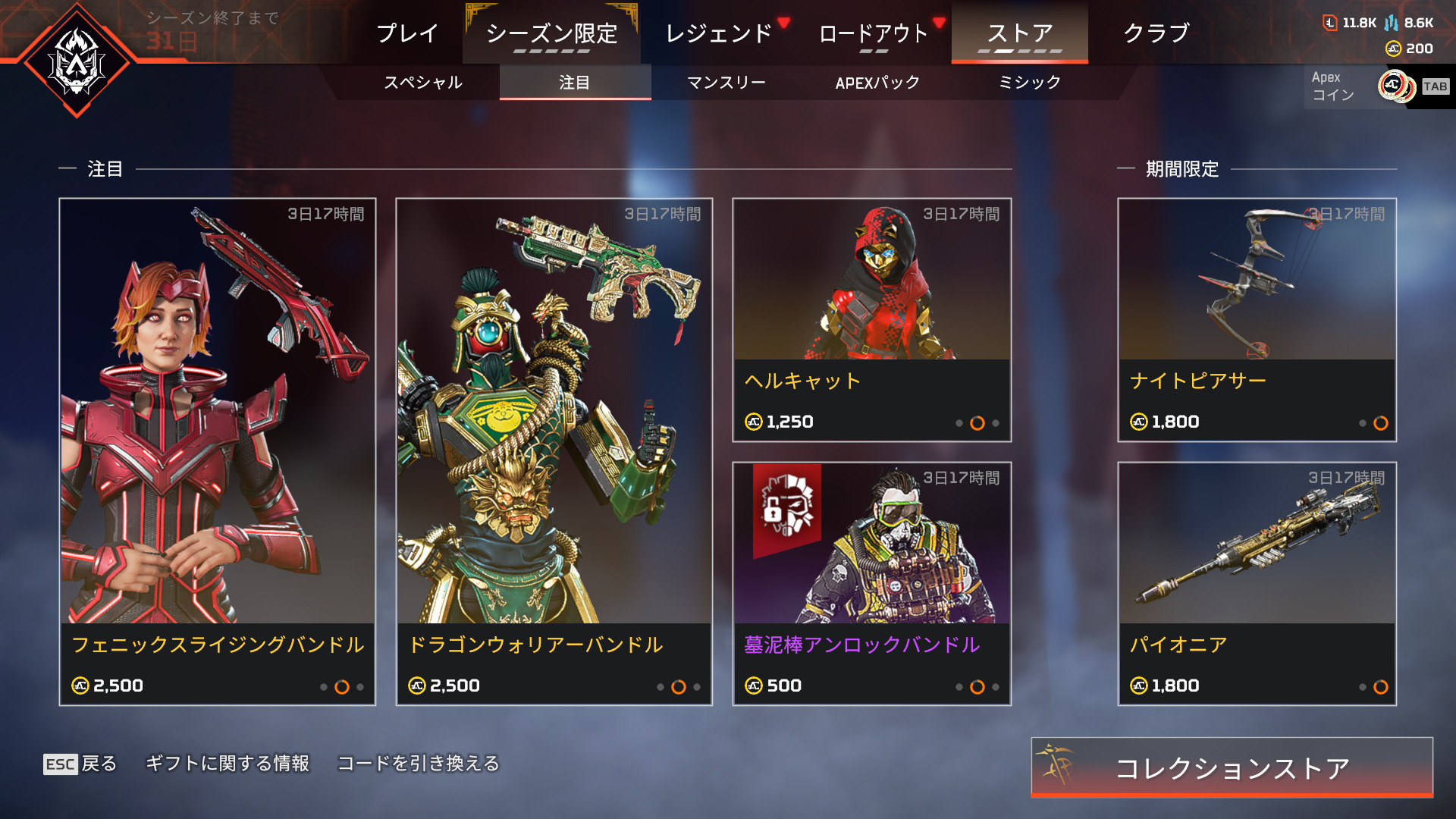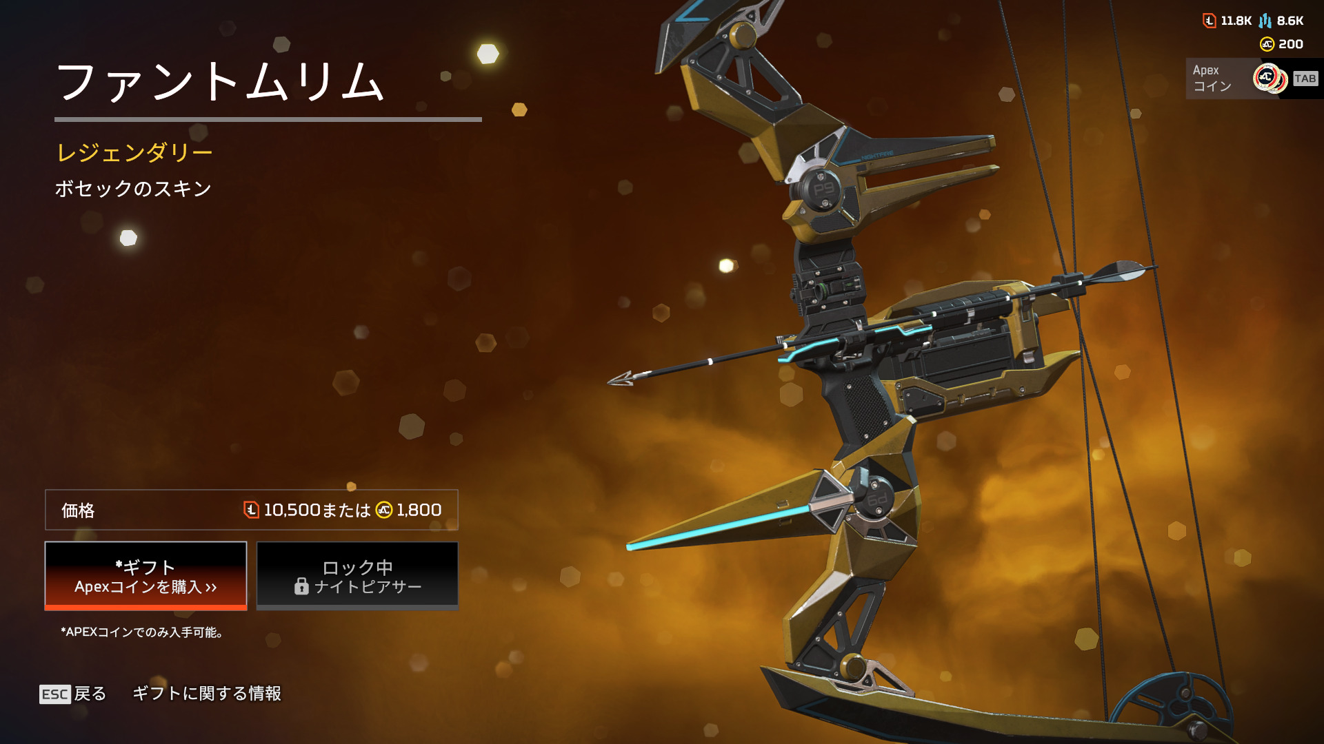 ストア情報【通常ストア情報】ボセックボウとクレーバーの色違いレジェンダリースキンが登場 2023年9月30日 2023年9月30日最新記事 【APEX】APEX LEGENDS™ つまんでつなげてますこっと 11月2週から! 【APEX】R-99ミシック図鑑 【APEX】シーズン27に強化されるレジェンズのパーク画面 【APEX】バンガ、ライフライン、ワット、レイスの新スキントラッカー 【APEX】シーズン27 AMPDイベントスキン一気出し!!(リーク) 【通常ストア情報】ボセックボウとクレーバーの色違いレジェンダリースキンが登場ストア画面ストア内容の詳細新しく追加されたアイテムのみ紹介しています。ボセックボウのスキン「ナイトピアサー」ボセックボウの色違いスキン「ファントムリム」クレーバーのスキン「パイオニア」クレーバーの色違いスキン「荒地の逸品」 Facebook Twitter