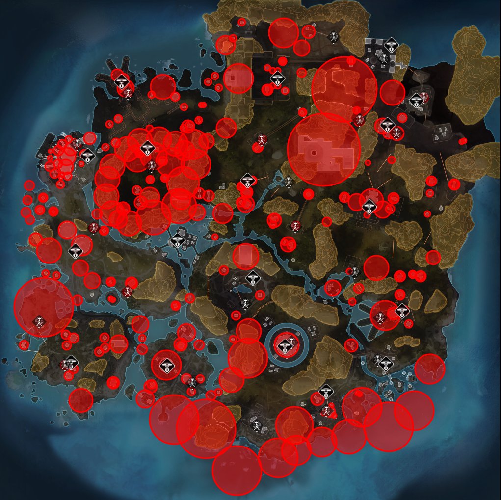 Here are all the end zones recorded so far on the updated Storm Point.🗺️ Data coming from 130 games in DGS - taken from the Atlas WIP pic.twitter.com/T1CCAfHiDZ
