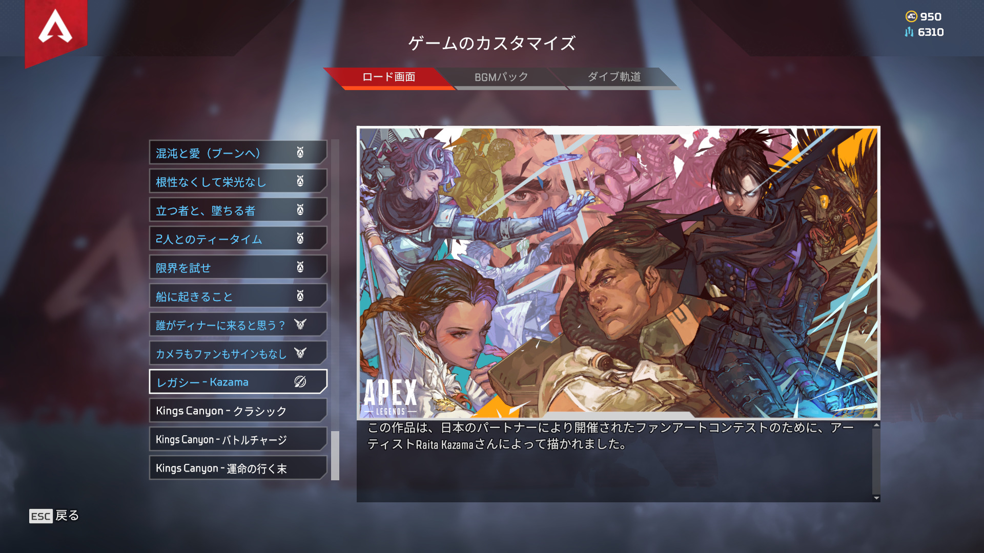 獲得できるロードスクリーンは毎週変更されます。(合計6種類)