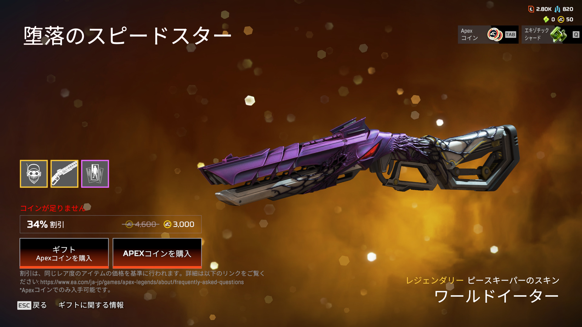 ストア情報リーク情報【APEX】シーズン21の堕落の夏ストアのスキンが7/2から再販 2025年6月29日 2025年6月29日最新記事 【APEX】緊急修正対応が行われました(サーバー側) 【APEX】レイスのエターナルライフスキンが11.26に再販 【APEX】シーズン27開始で アクティブユーザー20万人/DAY回復 【APEX】ヴァルキリー&ホライゾンが大幅上昇!前シーズン強化のシアが1%割れ(新シーズン27開始後のピックランク) 【APEX】シーズン27、世界大会、シーズン28のスケジュール 堕落の夏ストアのスキンが7/2から再販(Hypermyst氏より)価格は2024年7月のもの再販のため変更される可能性はあります。https://apexlegends-news.com/wp-content/uploads/2025/06/rev_summer.mp4◆レヴナント◆コンジット◆オクタン◆パスファインダー◆R-301◆ピースキーパー◆R-99リカラーリカラースキンも追加されます。 Facebook Twitter