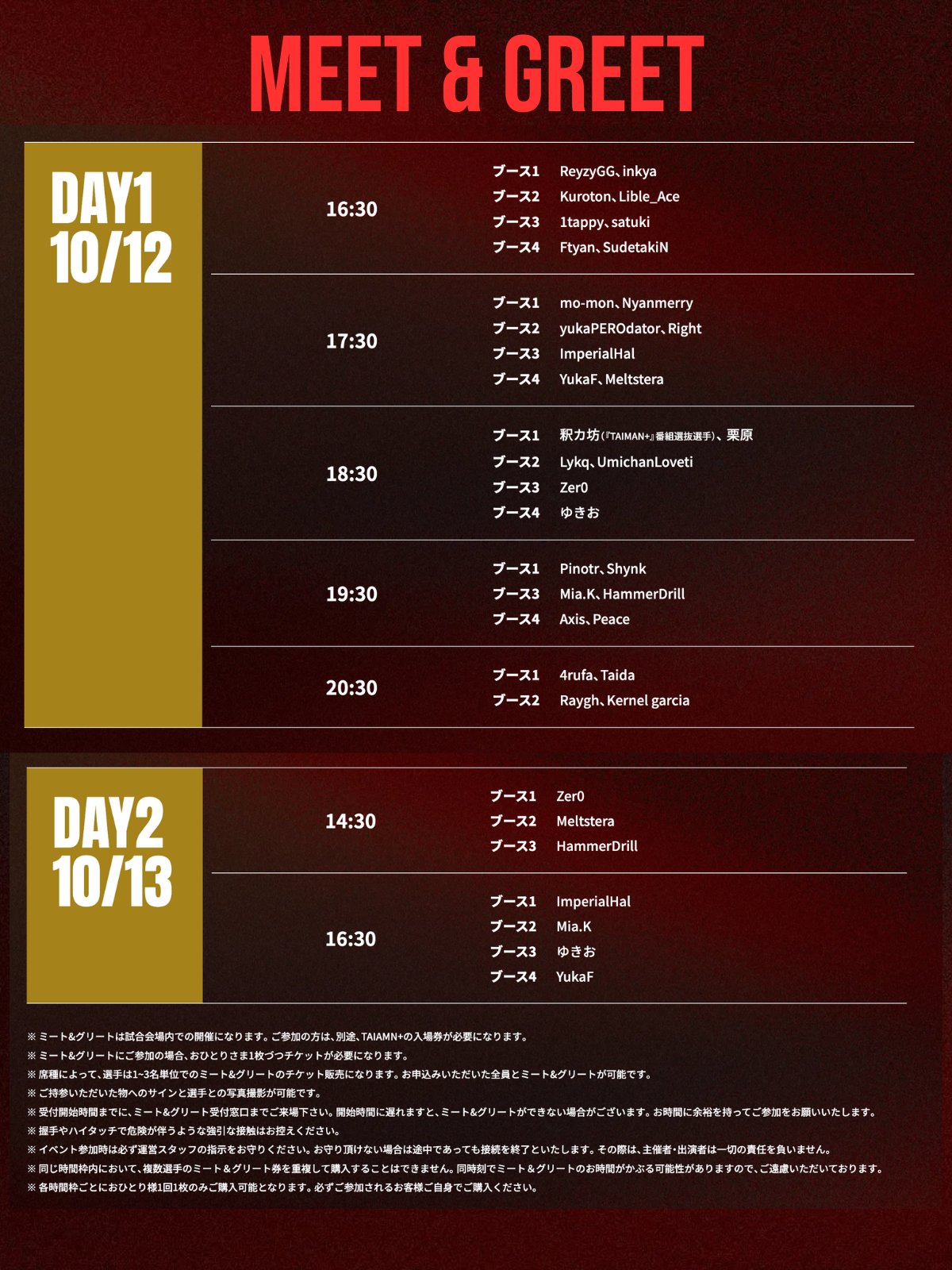 選手と話して楽しもう。試合の合間のMEET&GREETブースに訪れる選手のスケジュールが公開されました。プレゼントは、プレゼントBOXに入れていただけますと運営チームが責任をもって選手に渡していただけるそうです。