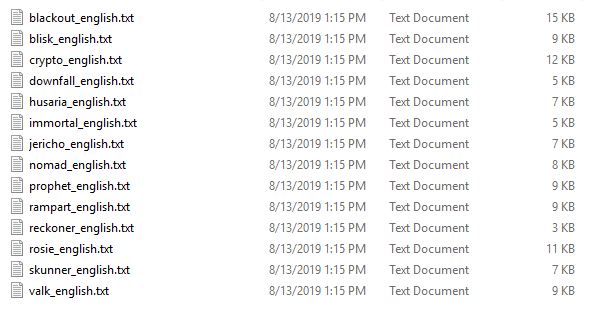 APEXリリース数日後にリークされたゲームファイルに存在するレジェンド名称のリスト画像