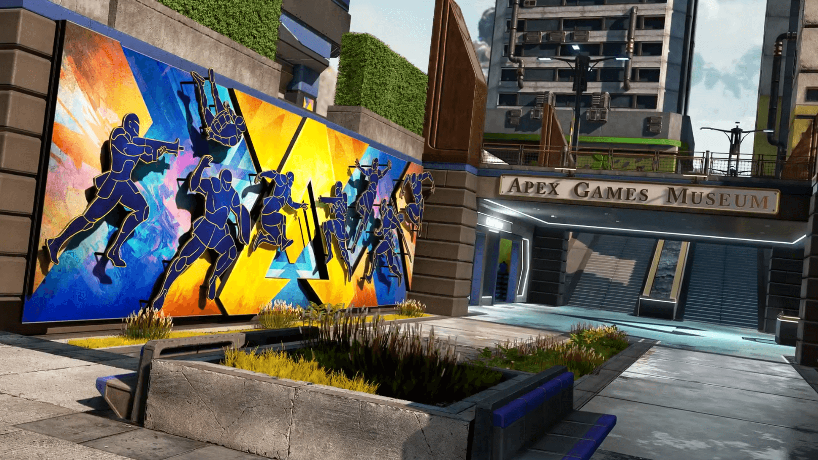 フラグメント中央部分には、大きなAPEXロゴの建物?オブジェ?がありその周辺に「APEX GAMES MUSEUM」という資料館エリアが追加されている。