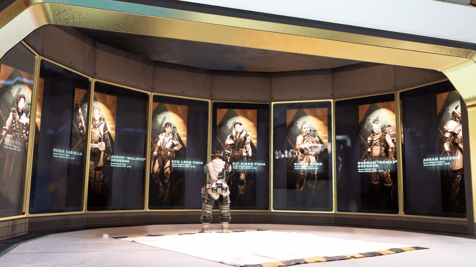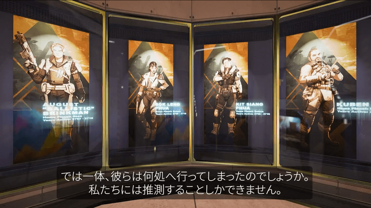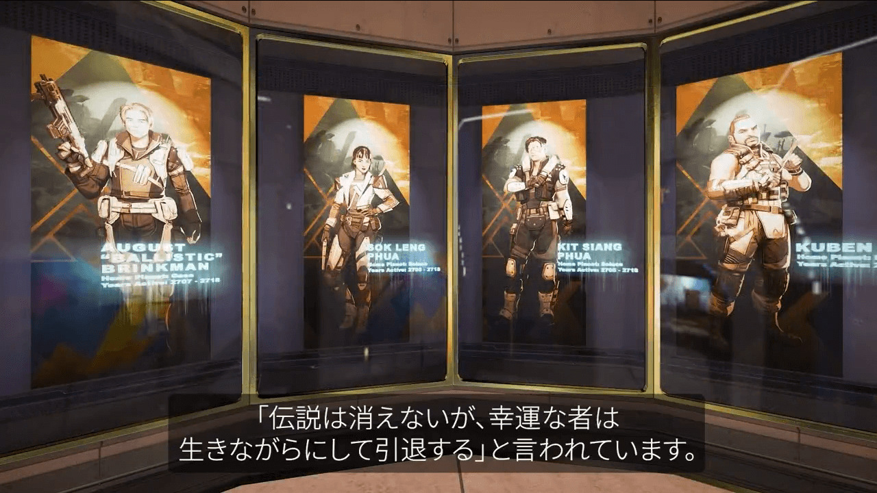 次のシーズン17で登場する「バリスティック」や、APEXリリース初期にゲームファイルに名前があった「Husaria(フサリア)」「Nomad(ノマド)」が資料として飾られている。