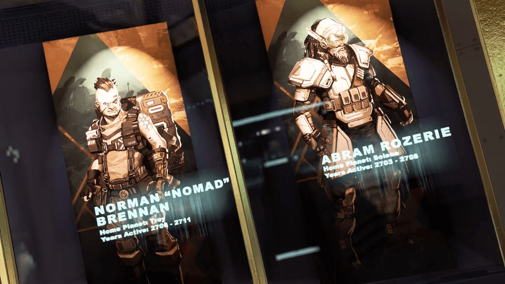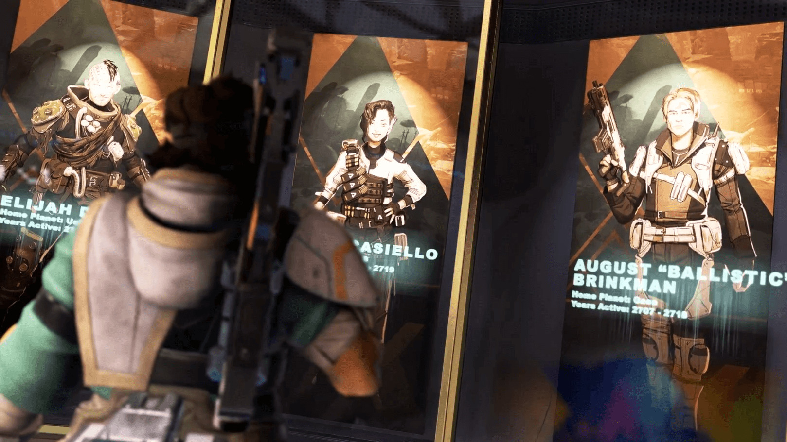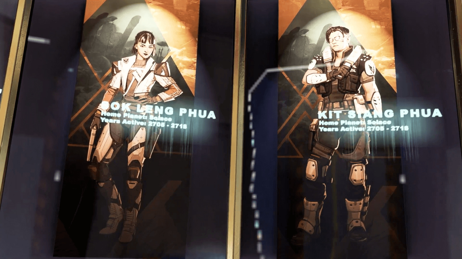 次のシーズン17で登場する「バリスティック」や、APEXリリース初期にゲームファイルに名前があった「Husaria(フサリア)」「Nomad(ノマド)」が資料として飾られている。