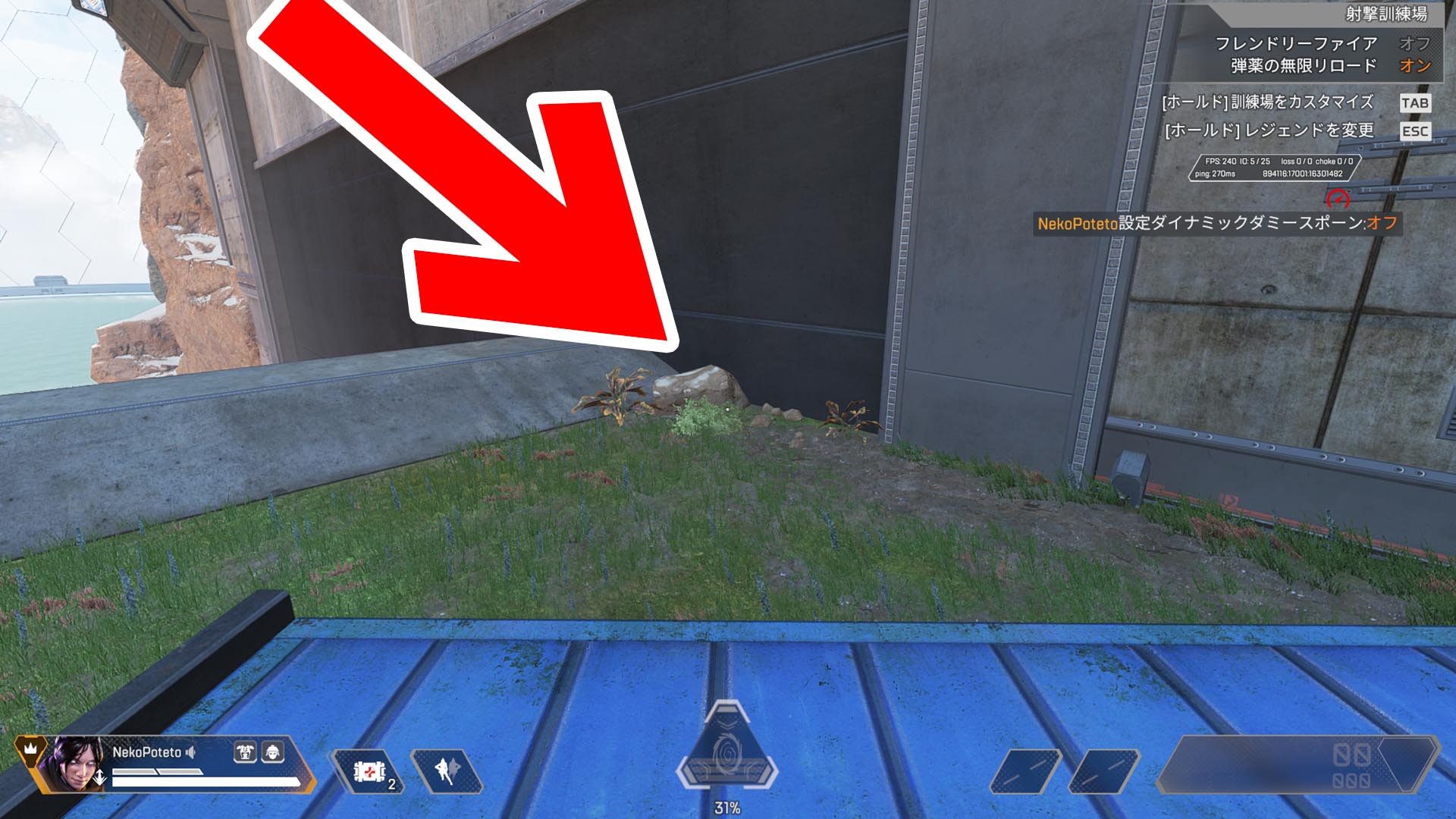 2023年5月10日のエーペックスレジェンズ シーズン17「アーセナル」のアップデートで、射撃訓練場が大幅にアップデートされ、3人称視点にする隠し要素の場所が変更されました。