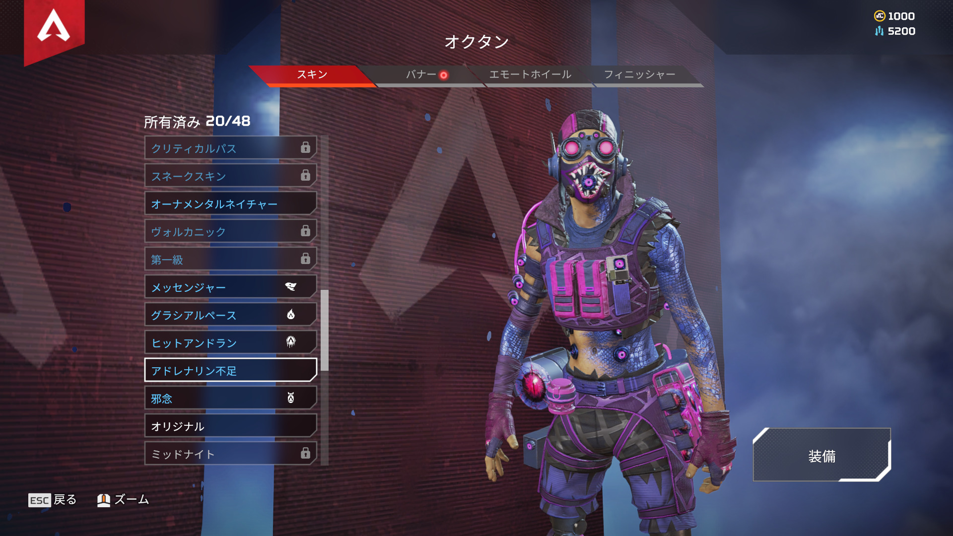 オクタン「アドレナリン不足」ゲーム内での見え方