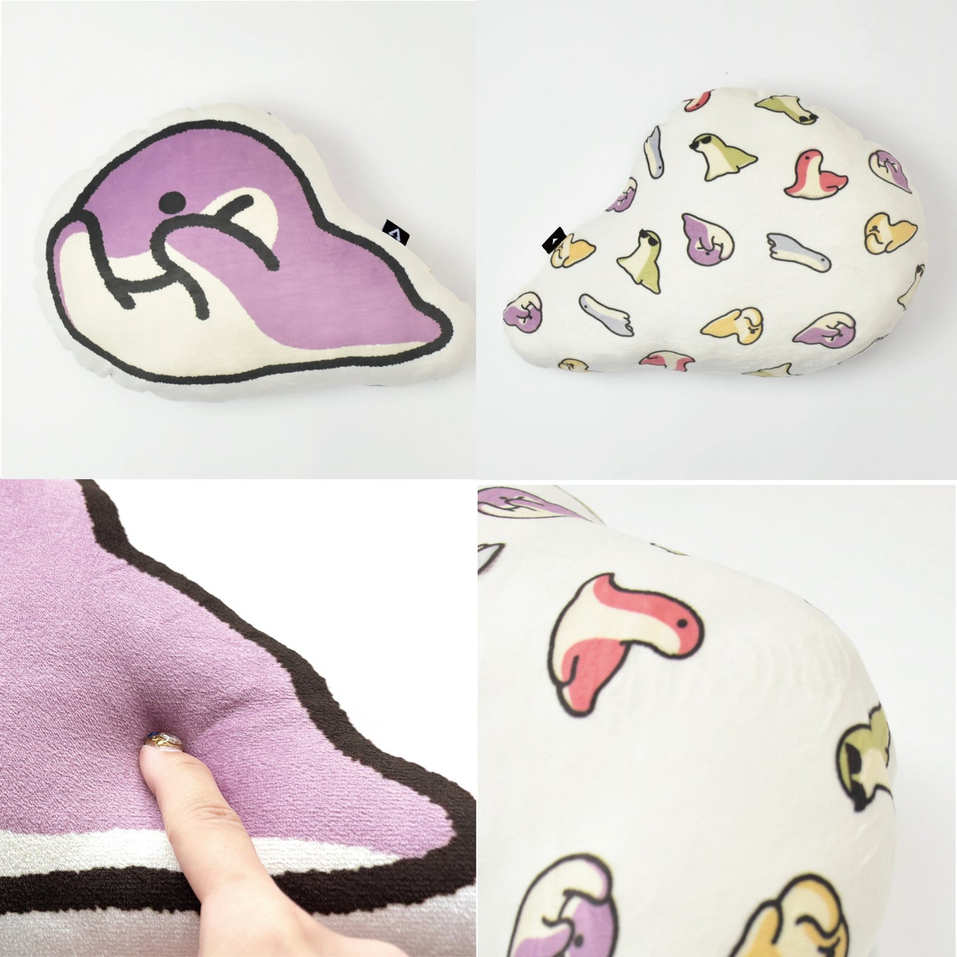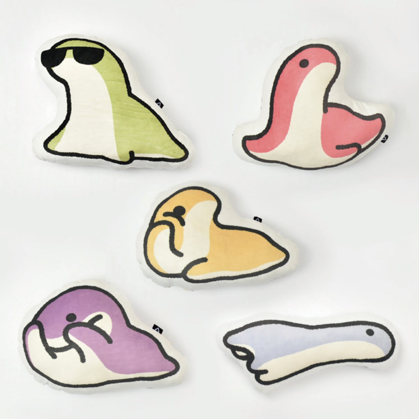 ■5色展開のネッシークッション。肌触りの良いもちもちの感が魅力の人気商品です。