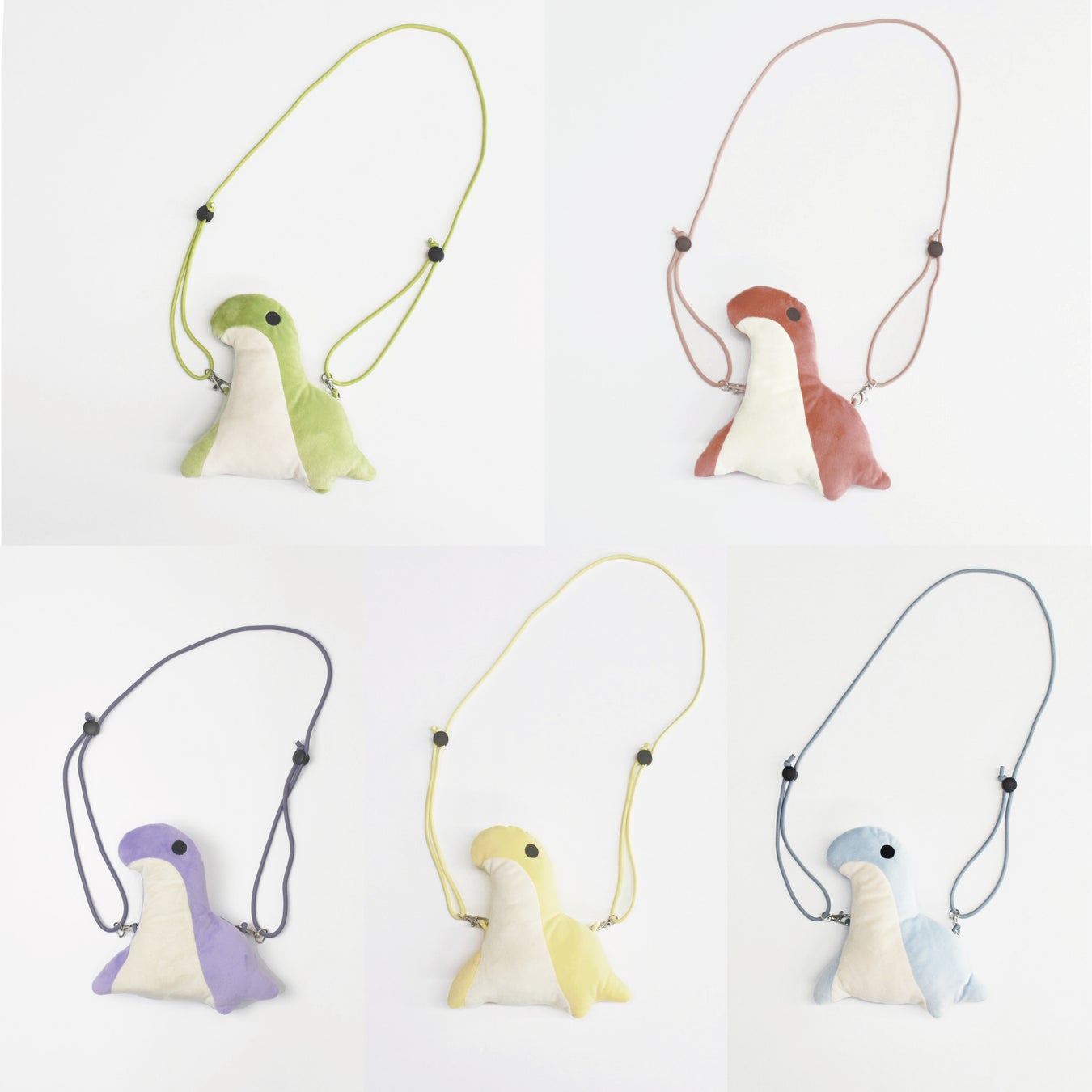 ■5色展開のネッシーぬいぐるみ型ポーチショルダー。ぬいぐるみの背面には小物を入れて頂けるファスナーがありポーチショルダーとしてご使用して頂けます。