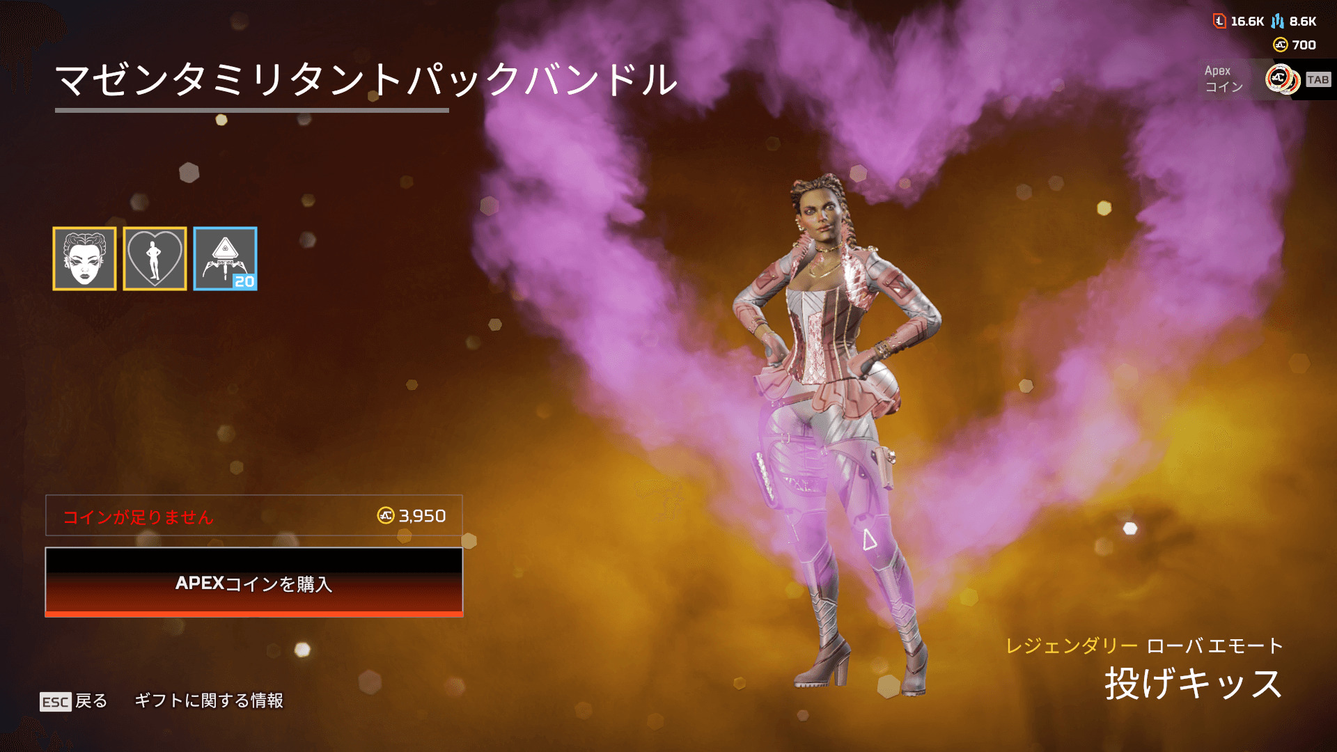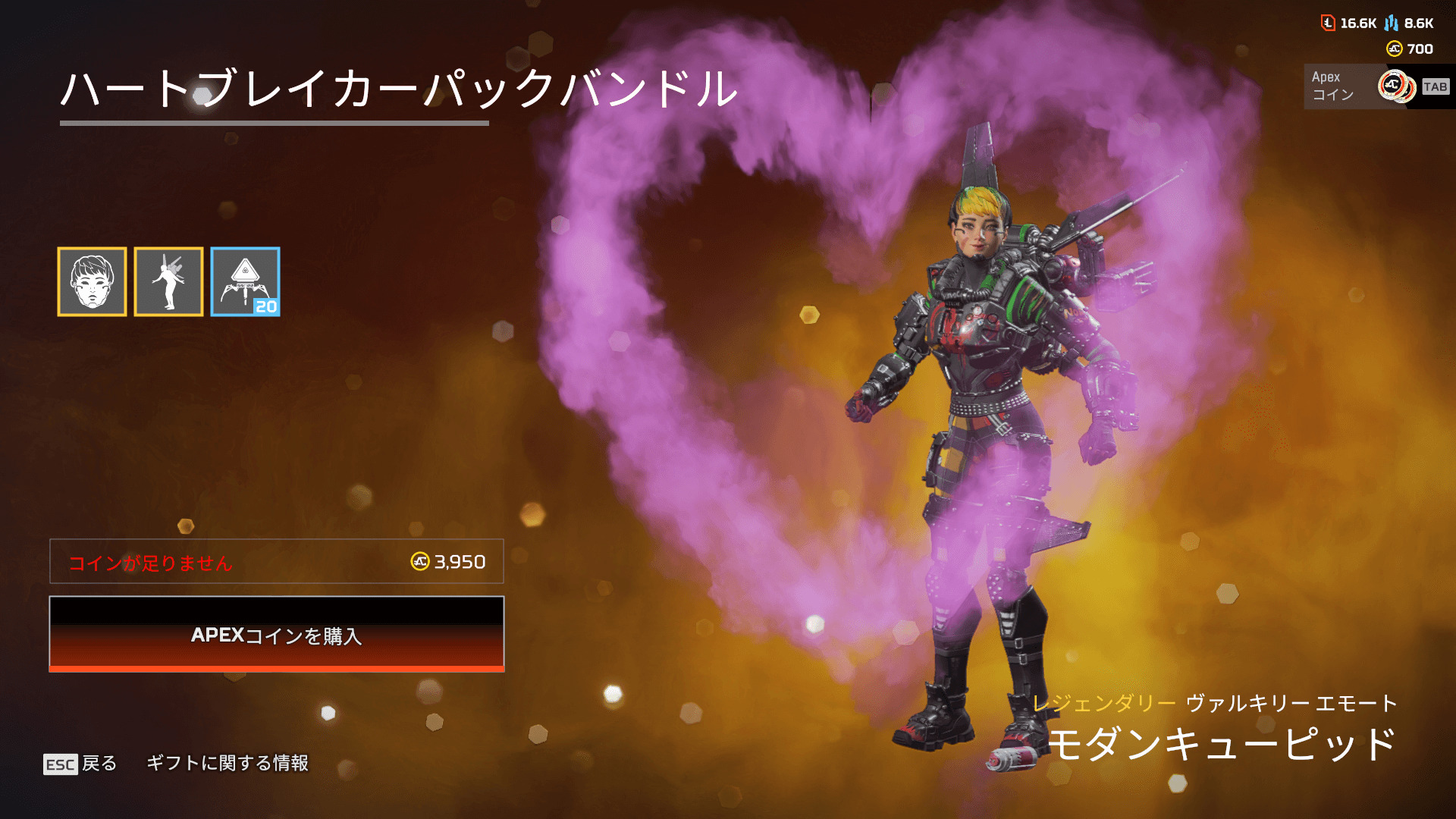 【APEXストア情報】バレンタインセールが開始!「ヴァルキリー」「ローバ」「バンガロール」でハートが出せるエモートが登場