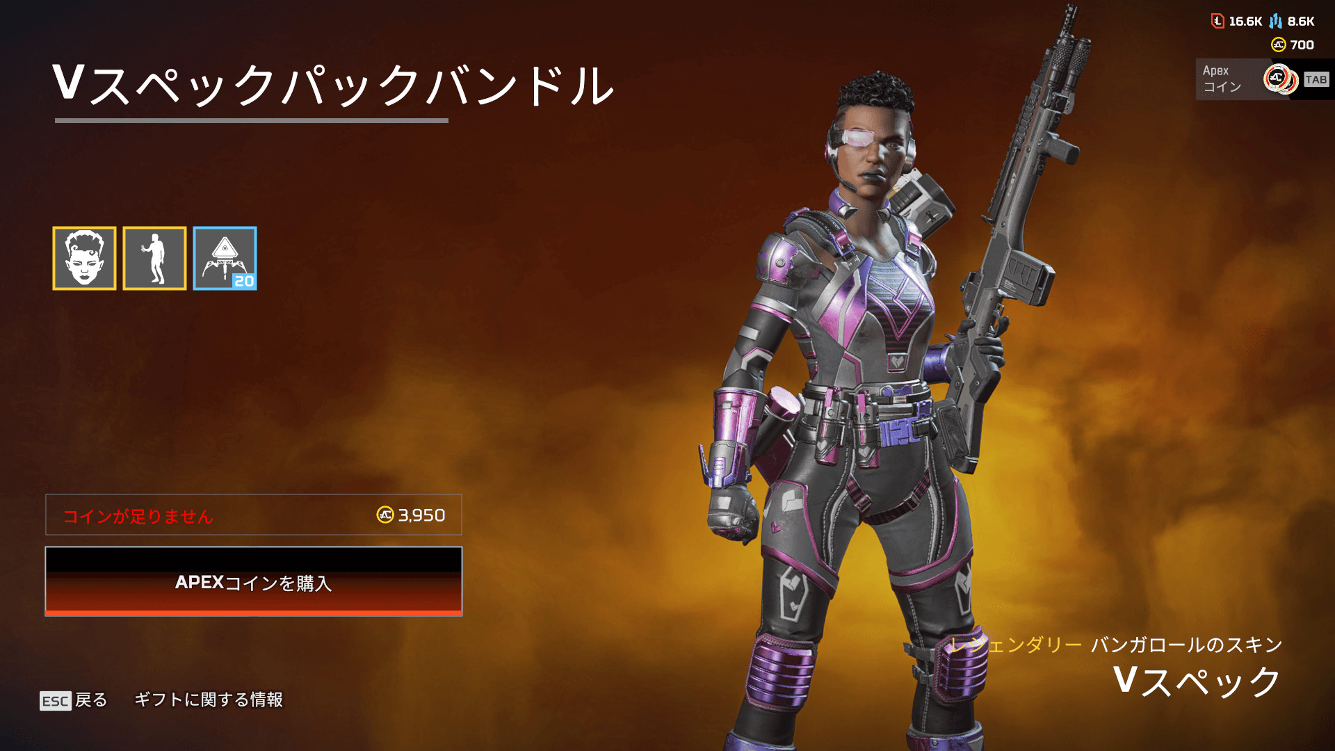 - バンガロールのスキン「Vスペック」