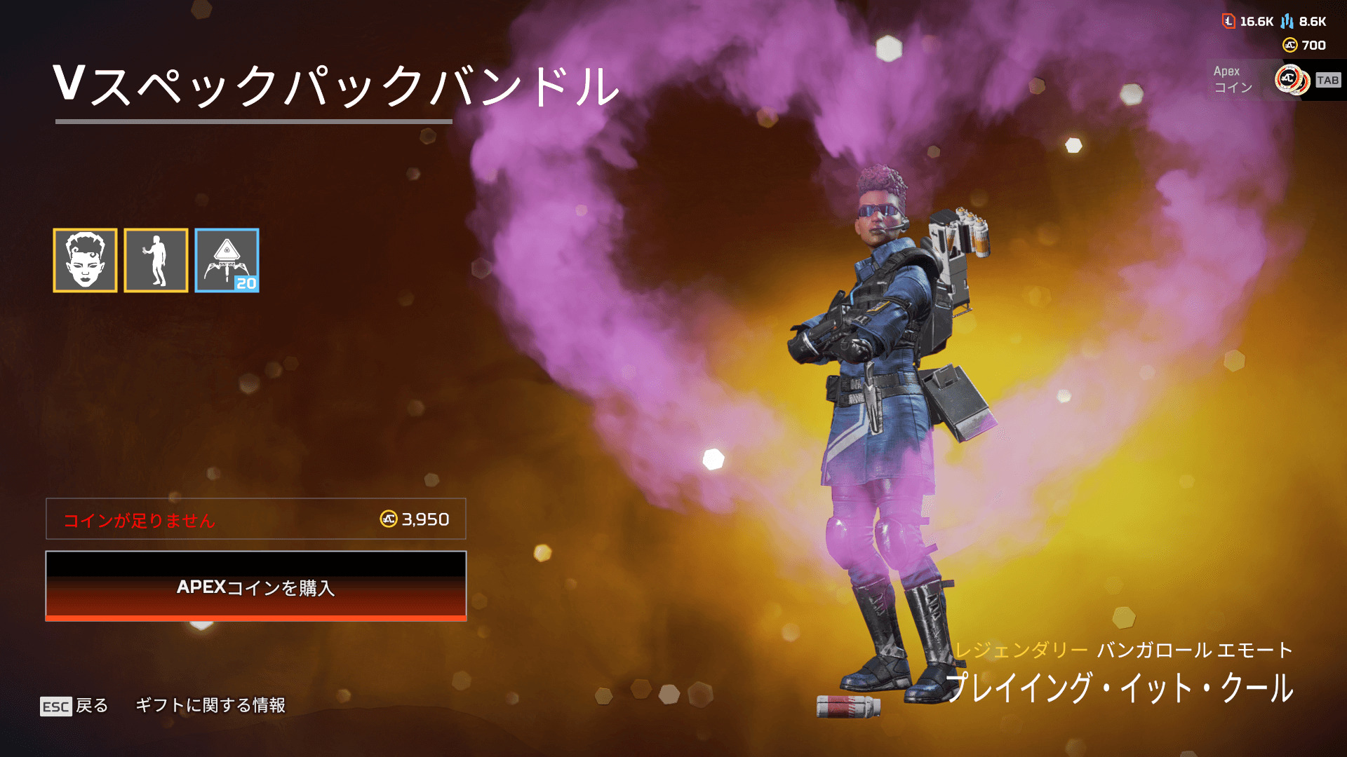 - バンガロールのエモート「プレイイング・イット・クール」
