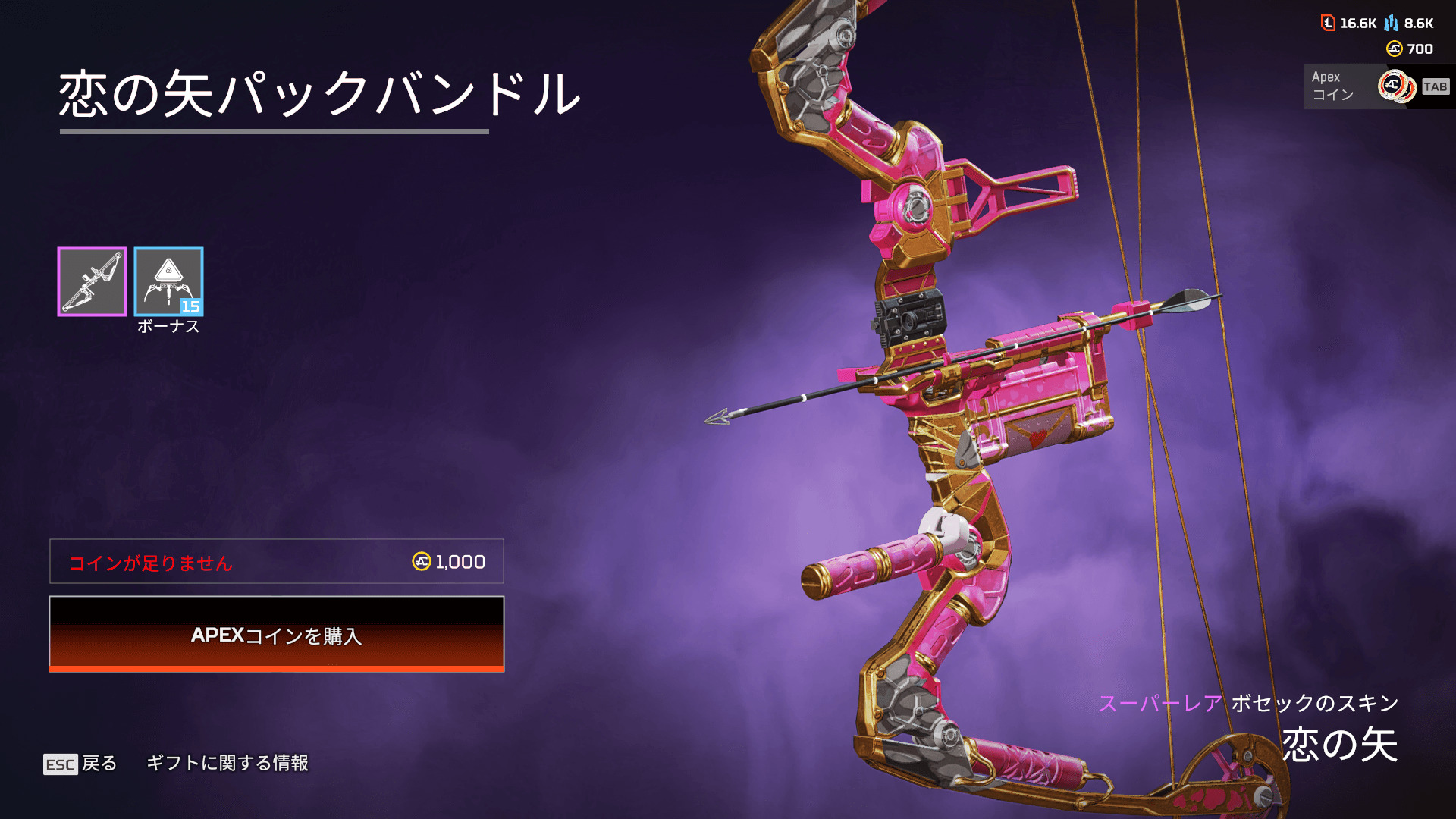 - ボセックボウのスキン「恋の矢」
