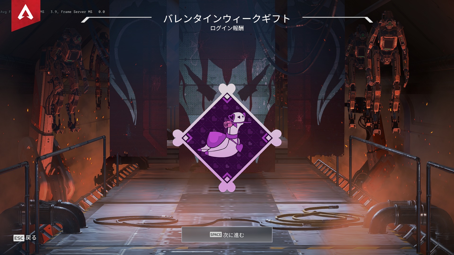 イベント中にエーペックスにログインすることでバレンタイン限定バッジを獲得することが出来ます。