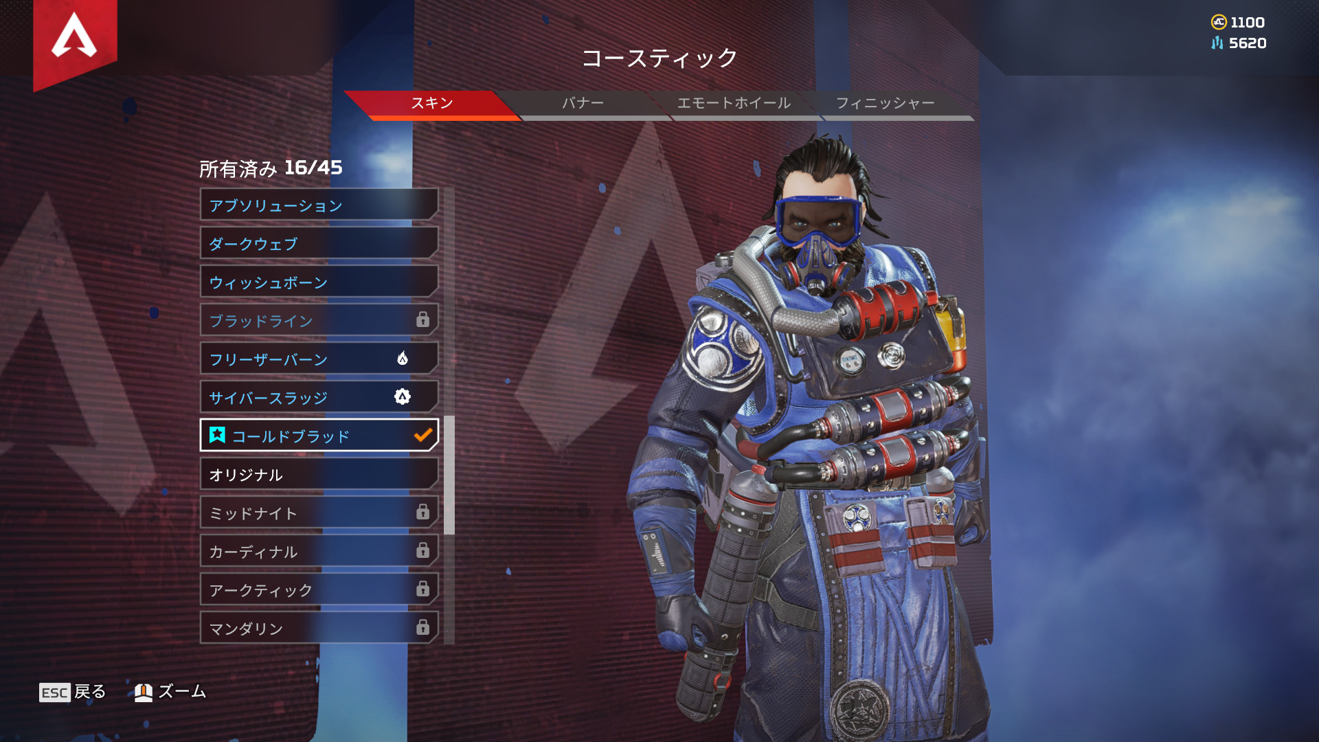 コースティック「冷血(コールドブラッド)」ゲーム内の見た目