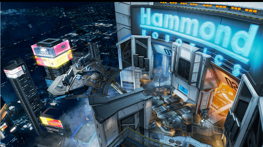 マルタの高層エリアのさらに上にそびえるのが、完全自動化されたハモンドマニュファクチャリングタワーです。これはオリンパスの中枢システム(最初期型)を構築するために建設されました。コードネーム「ドロップオフ」と名付けられたこのタワーは、現在も稼働中ですが、夜になるとアリーナの戦士たちが密かに集い、スモッグが立ち込める空の下で激戦が展開するエリアでもあります。