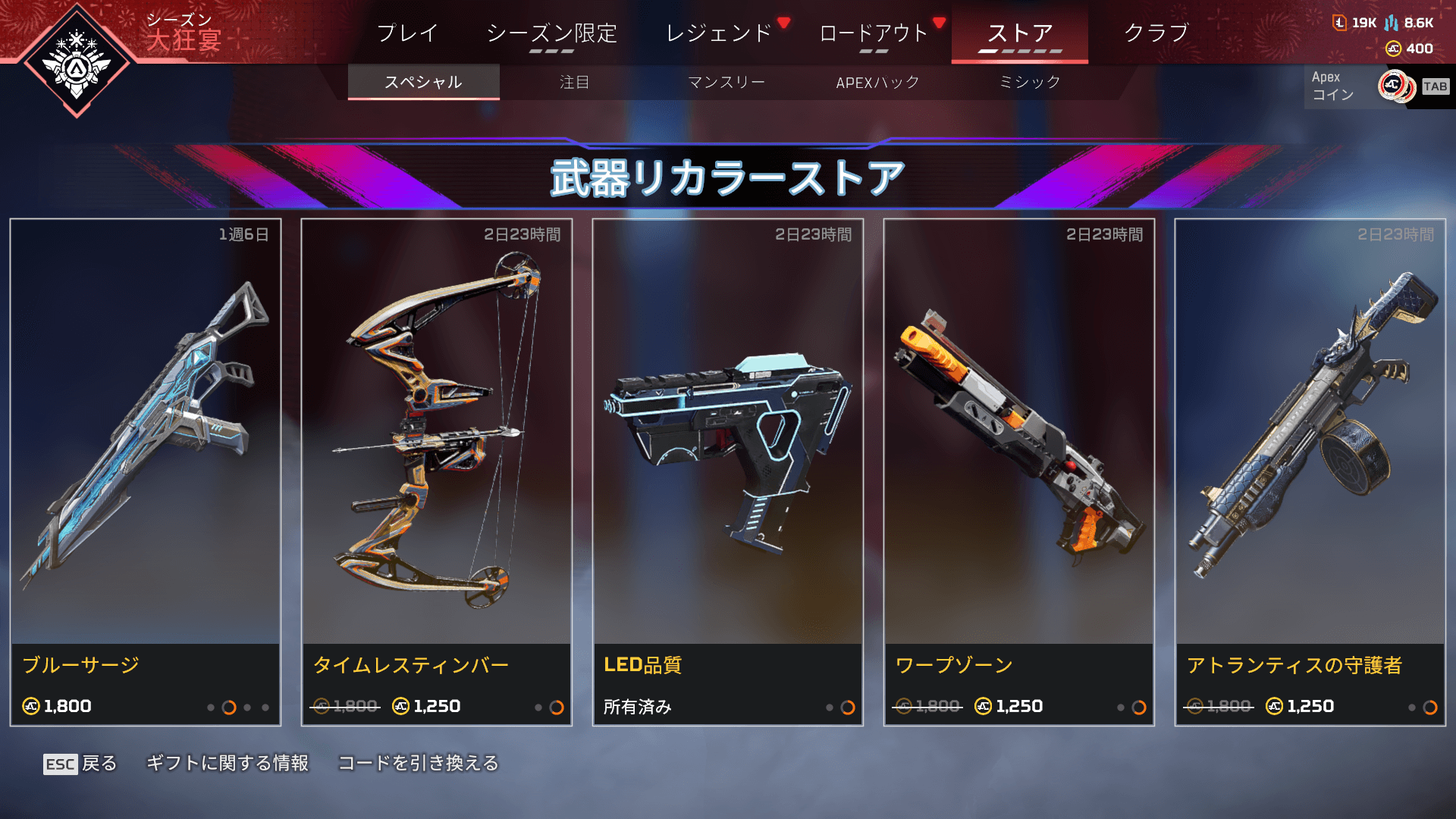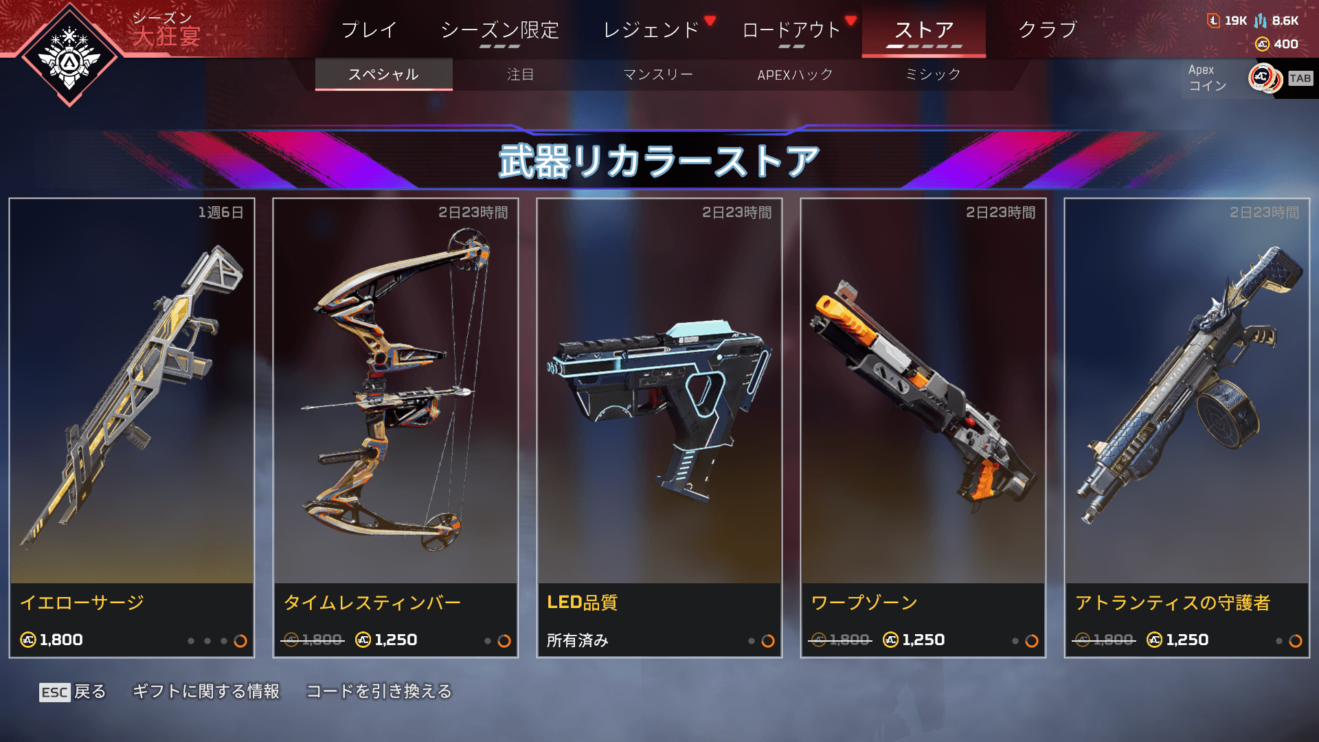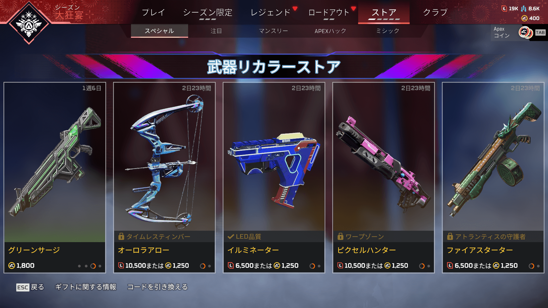 【APEXストア情報】武器リカラーストアが開催!カッコいい「R-301」「ボルト」「ロングボウ」のスキンが初登場
