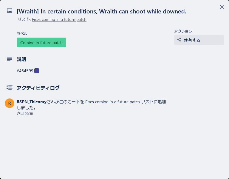 公式が公開しているバグリスト: https://trello.com/b/ZVrHV38P/apex-tracker