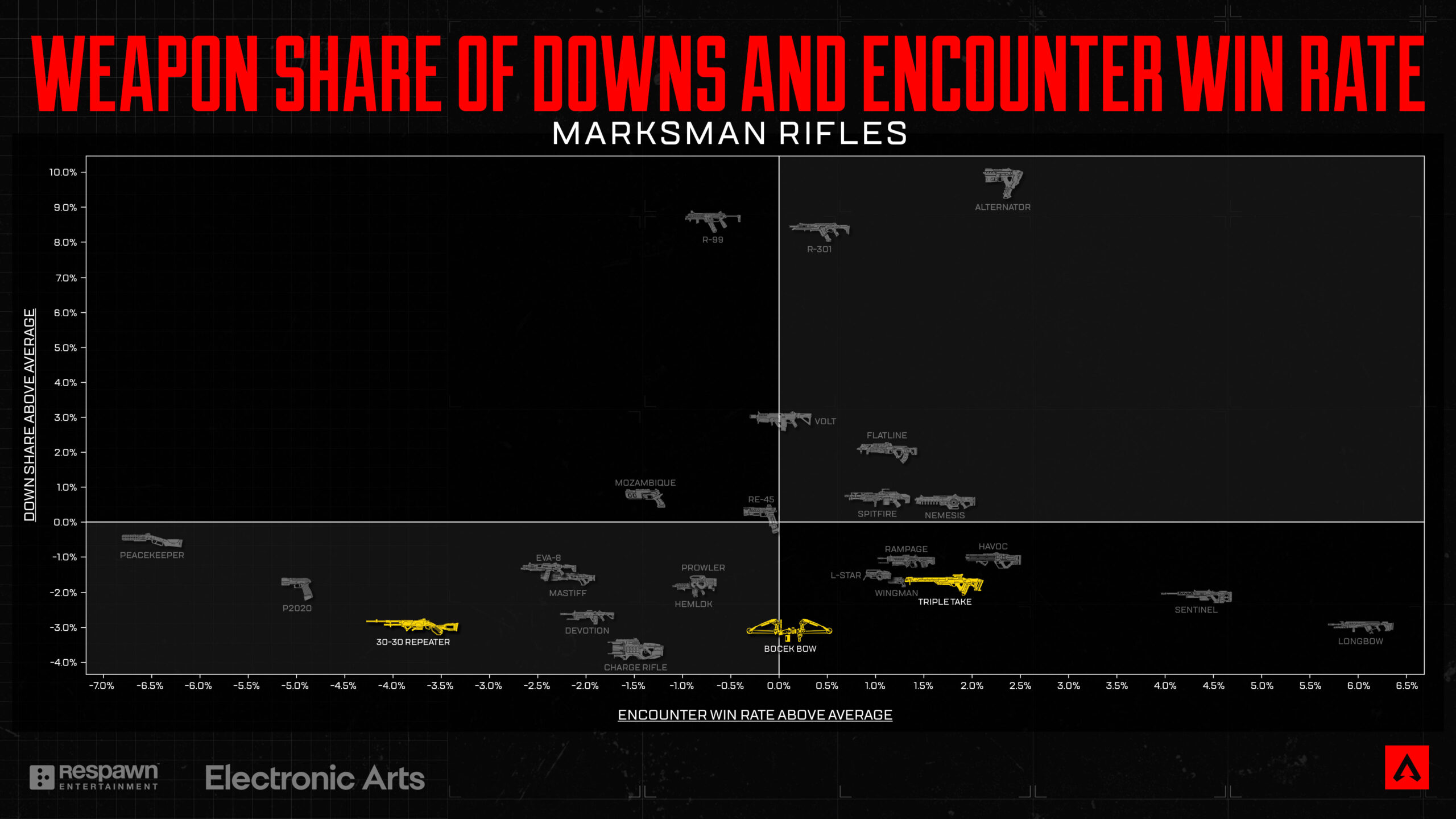 とはいえ、30-30リピーターが同クラスの他の武器に比べて性能が劣っていることに気づいたため、以前行った基本ダメージの弱体化調整を元に戻すことにしました。