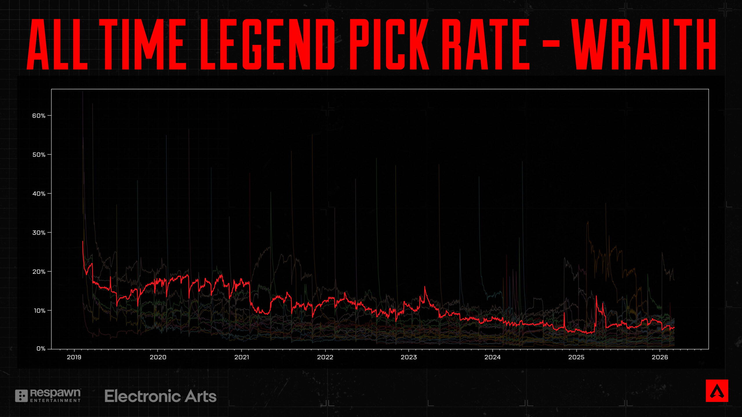 レイスのピック率はここ数年、徐々に低下傾向にあります。彼女は常に人気のあるレジェンドでしたが、他のスカーミッシャーに影を潜めつつあります。そこで、レイスのチームにおける有用性を高めると同時に、基本キットの使い勝手を向上させるアップデートを行う方法を探りました。