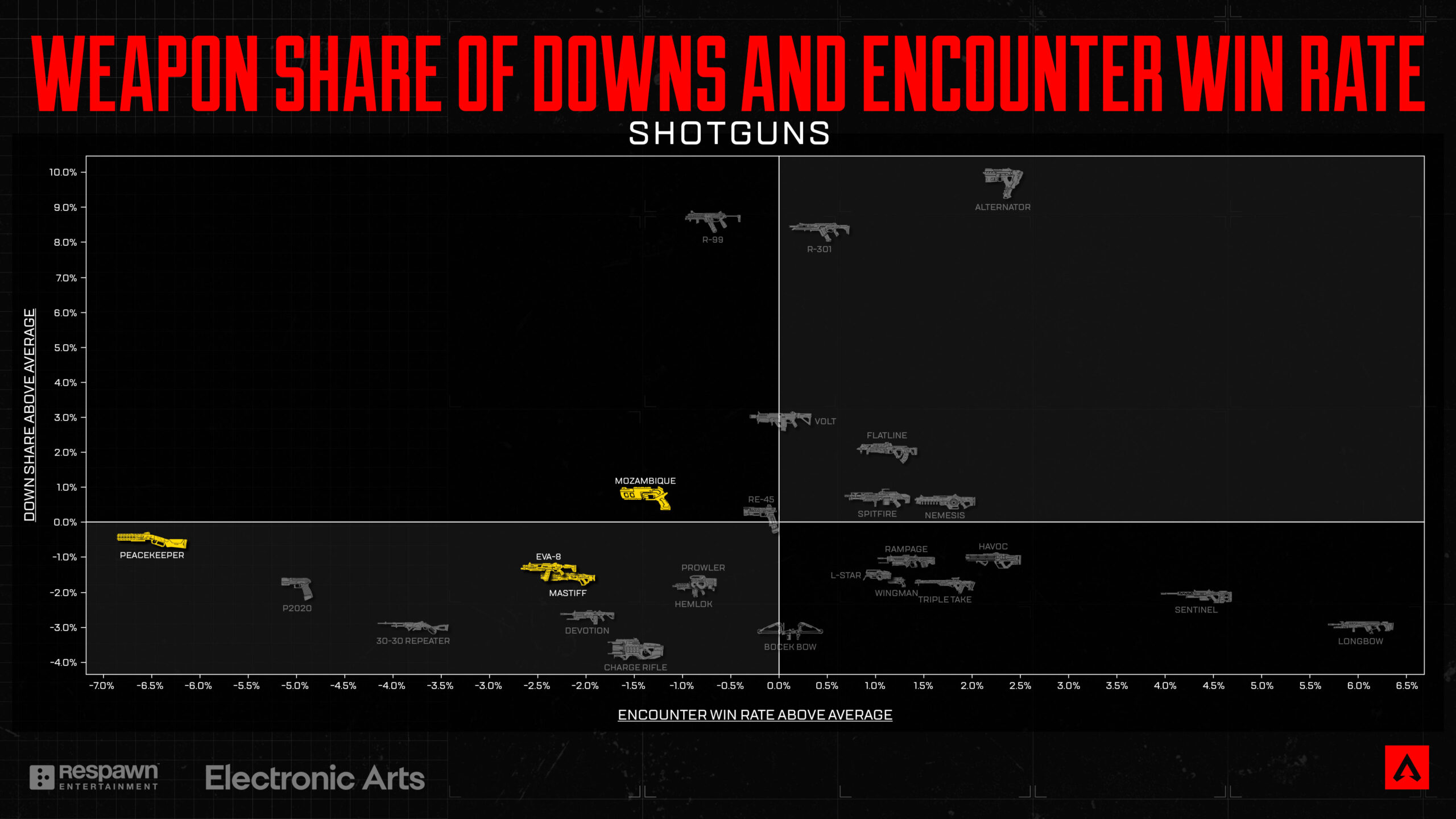 この進歩には満足していますが、他の武器と比較すると、依然としてグラフ上では比較的低い位置にあります。ショットガンの強さと人気が支配的なメタは多くのプレイヤーの不満につながる可能性があることを認識しているため、慎重に進め、状況を継続的に監視していきます。