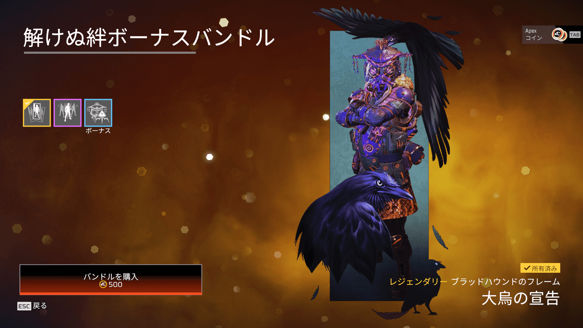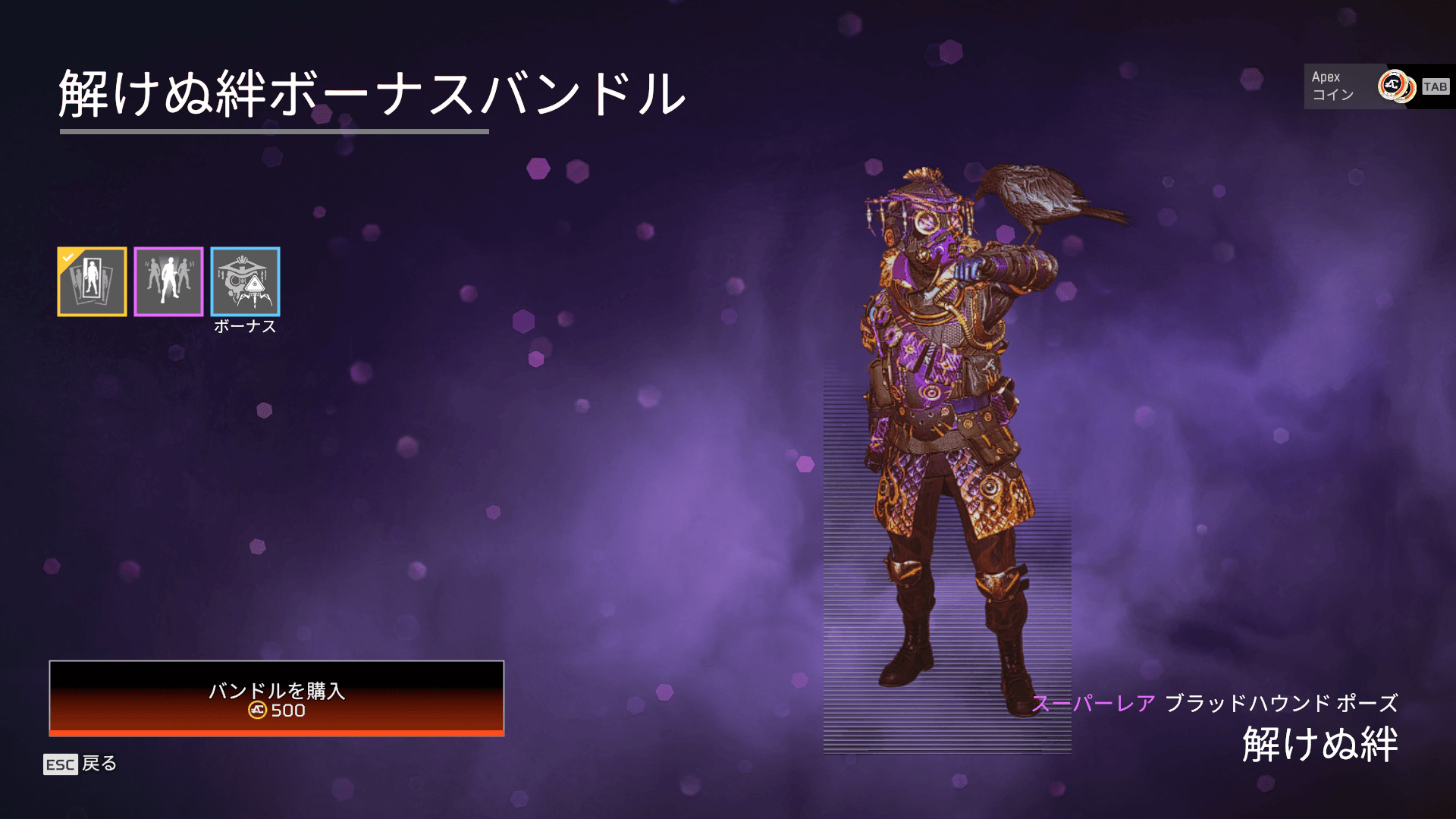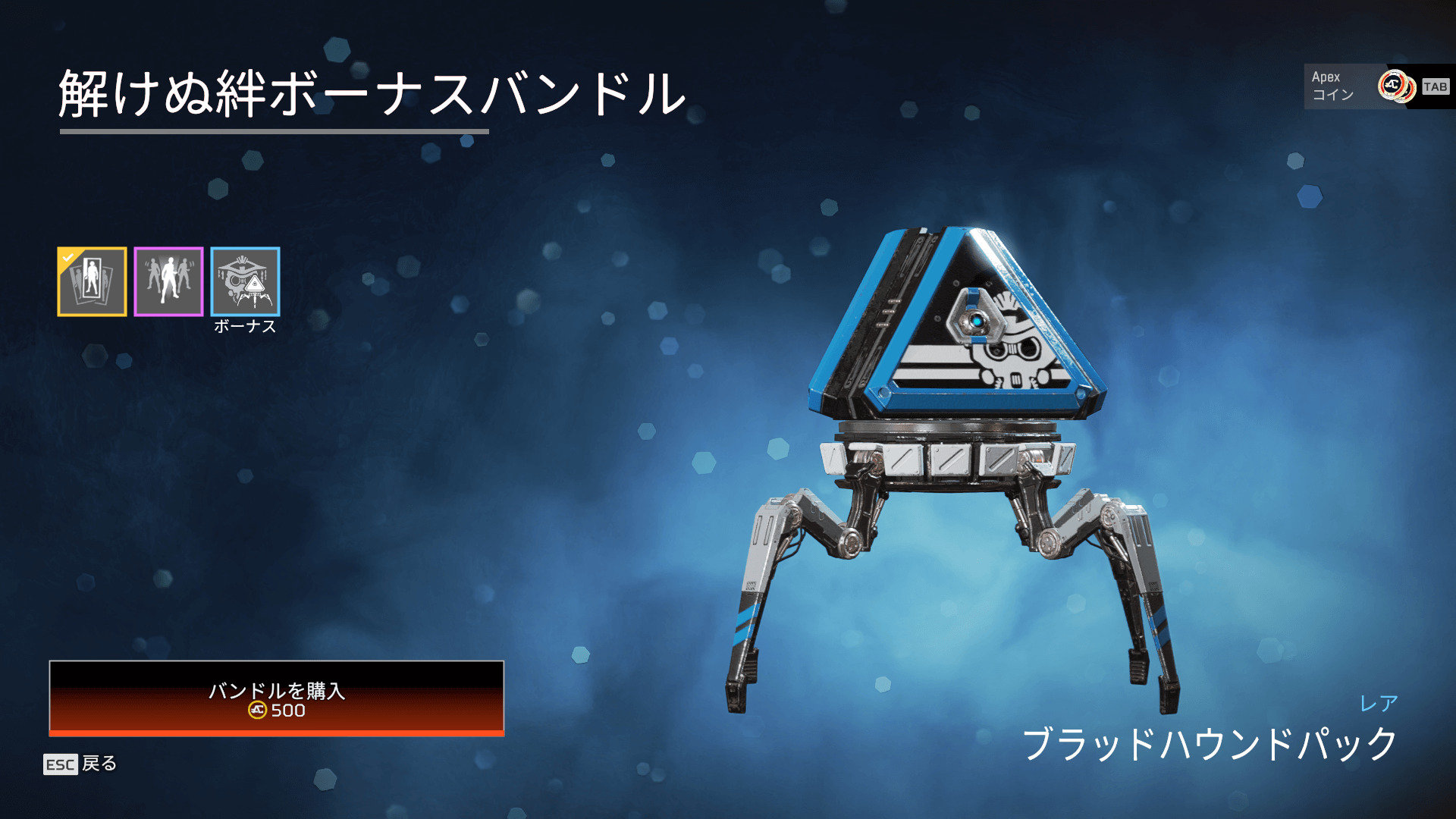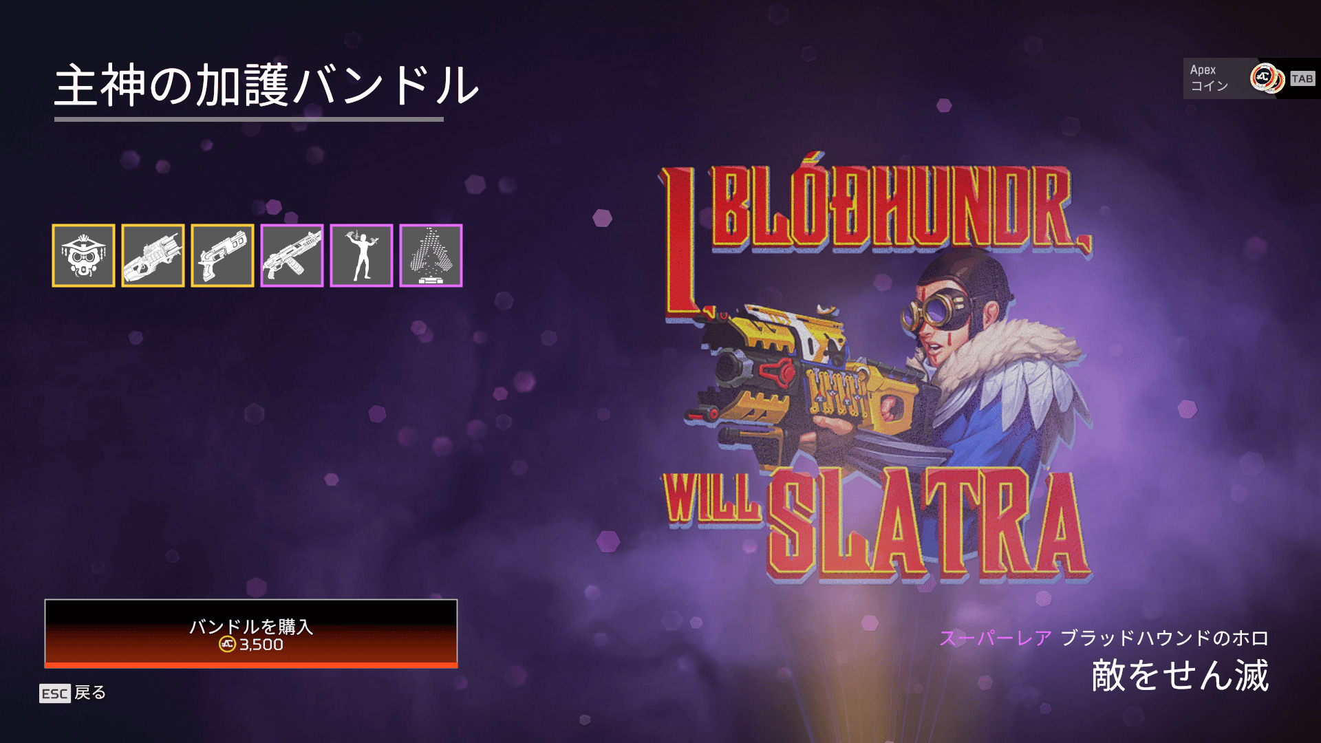 ※ブラッドハウンド関連のレア以上のアイテムが必ず1個出現するパック